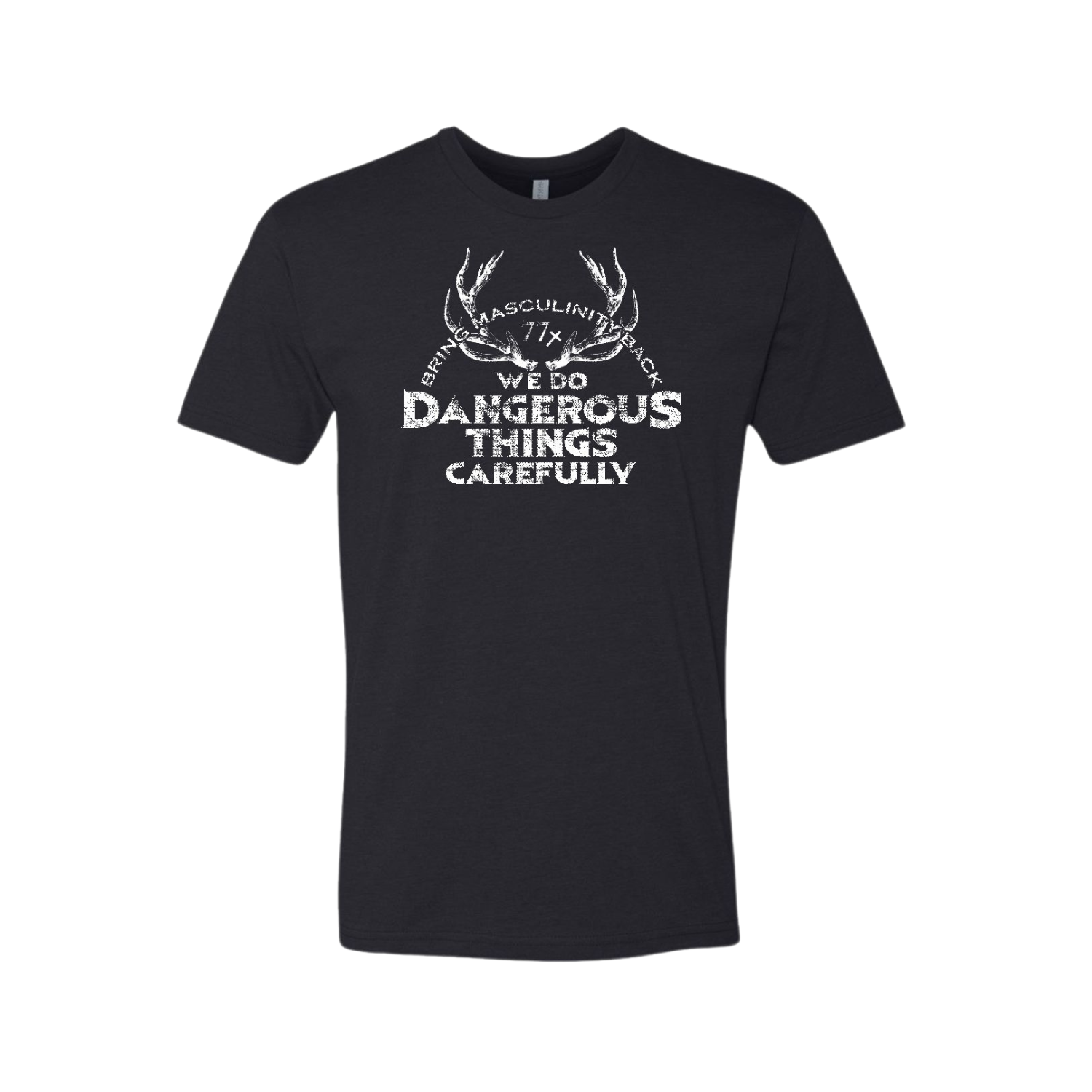 Embrace your bold side with our "We Do Dangerous Things Carefully" t-shirt. Perfect for those who tackle life head-on while keeping it cool, this tee is built for durability and style. Available in classic black or crisp white, it’s ideal for anyone who handles their challenges with precision and grit.